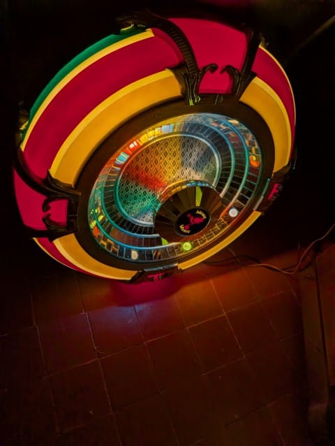 Here we have a very rare 4008 speaker,can be wall.mounted or on ceiling,designed to compliment the wurlitzer omt jukebox,the centre piece gentle spins round giving a display of changing colours reflected in the multiple mosaic mirrors,this is a large heavy item at 90 cm diameter x 40 cm depth and in good condition ,ideal Xmas present ! Bank transfer / cash on collection delivery…….. Hardman amusements w, we also have one with the bubble tubes running through
